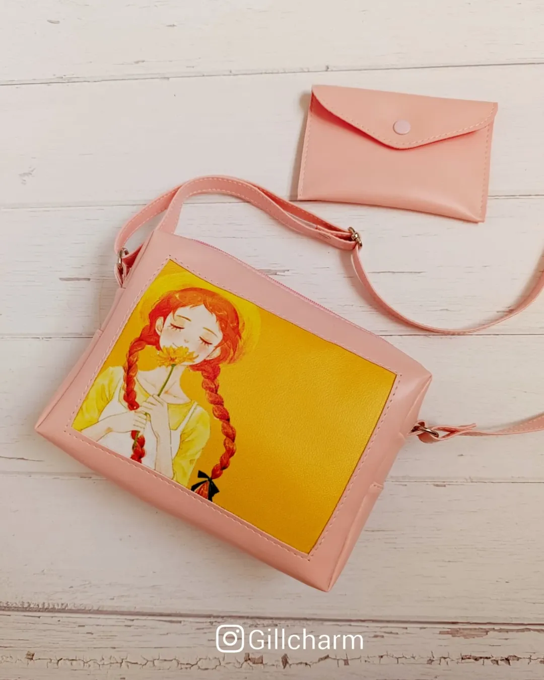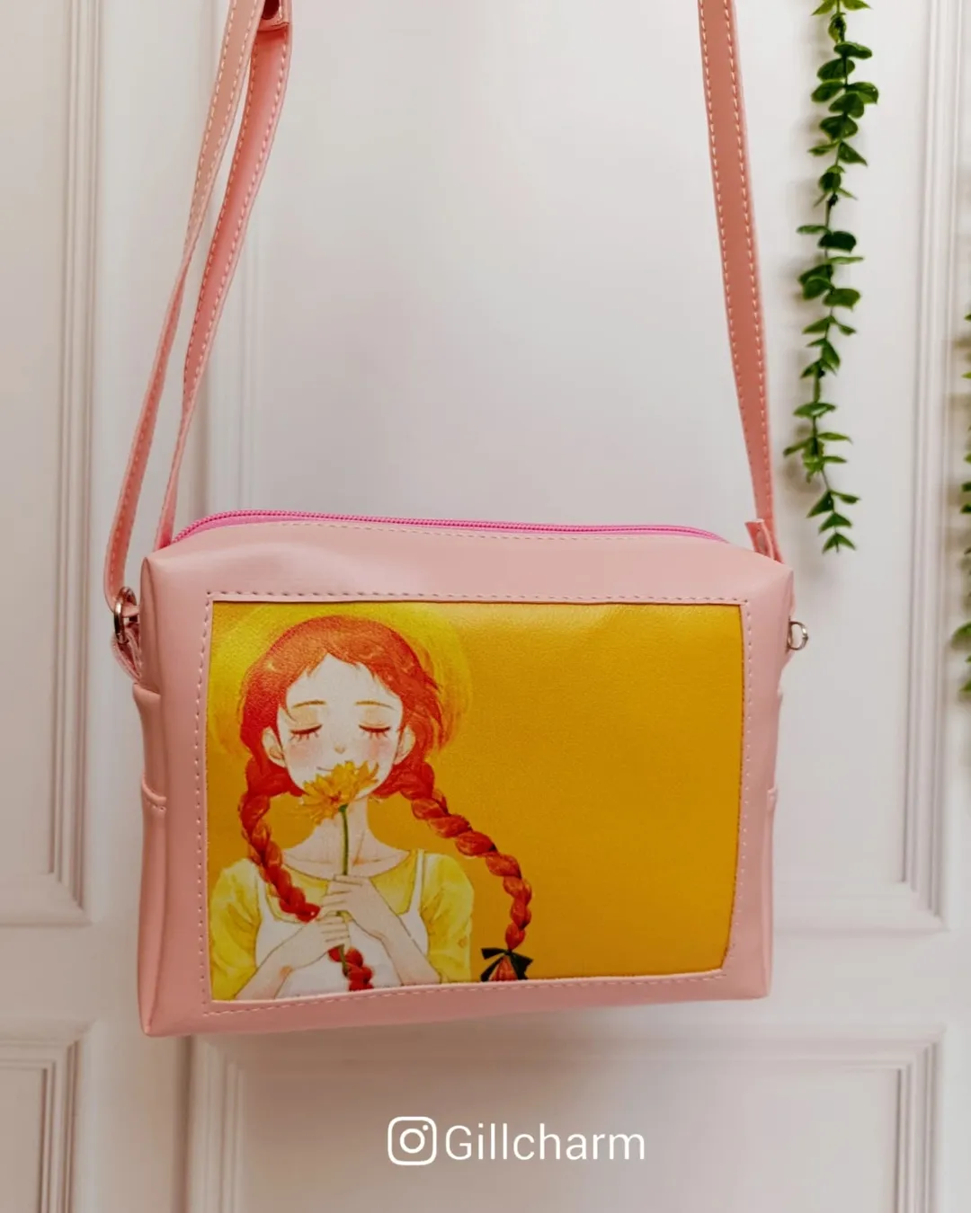 کیف دوشی مکعبی دخترانه با بند قابل تنظیم ابعاد ۲۰*۱۵*۷ سانتی متر